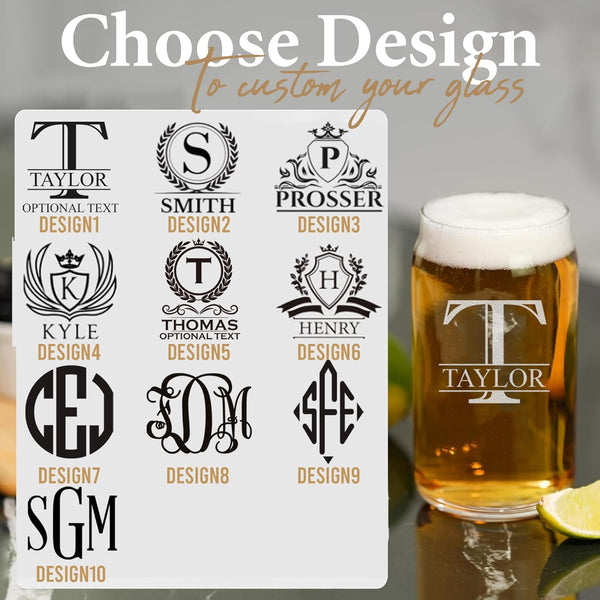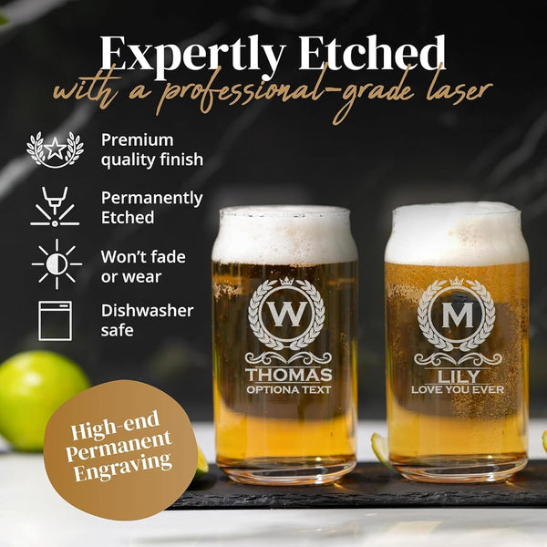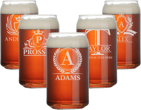 Personalized Beer Glass - 16oz Custom Engraved Monogram Beer Can