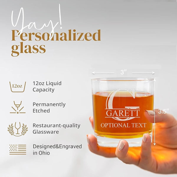 Personalized Whiskey Glass, Custom Monogrammed Whiskey Glass