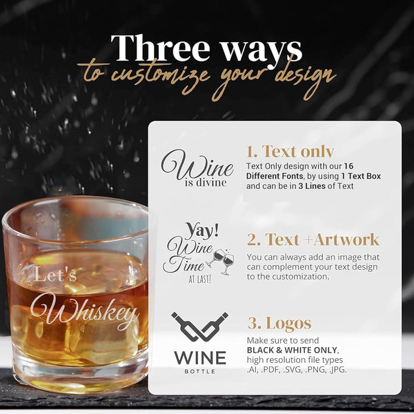 Enter your custom text and click Add to Cart to design your personalized whiskey glass today!